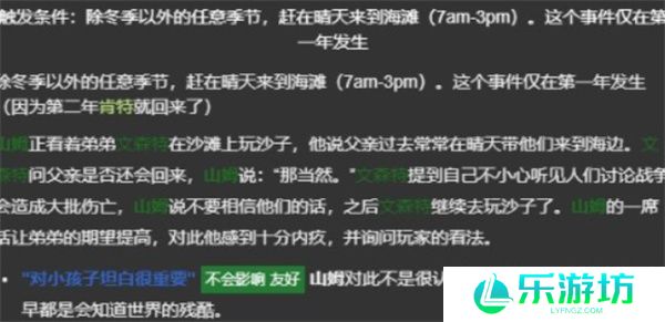 影响:此事件不会影响玩家与山姆的好感度,但能够增加对山姆家庭背景的理解和情感深度。