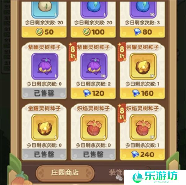 在庄园商店等级达到7级之后,你会解锁炽焰灵树种子的购买权限。炽焰灵树种子能够产出一些重要道具,如杂交基因和神话植物源液,几乎只有通过钻石才能获取。