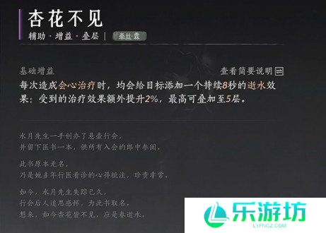 2、基础增益:每次造成会心治疗时,都会给目标施加一层养心效果,受到的治疗效果额外提升,最高可叠加3层。