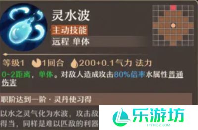 灵水波(主动技能):对单体敌人造成水属性普通伤害(攻击80%倍率)。