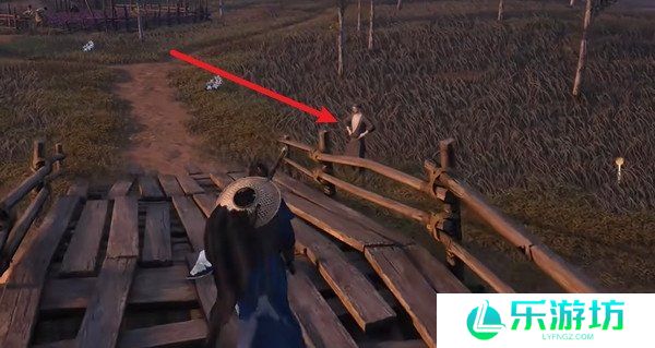 沿着主路向前行进,经过木桥后,你会遇到一名NPC【卖药郎】。