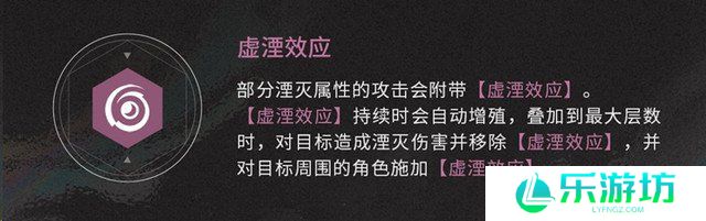 部分湮灭属性的攻击会附带【虚效应】【虚湮效应】持续时会自动增殖,叠加到最大层数时,对目标造成湮灭伤害并移除【虚*效应】,并对目标周围的角色施加【虚湮效应】。