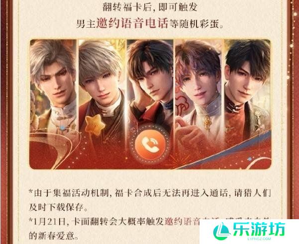 1、1月21日,卡面翻转时会大概率触发男主邀约语音电话。