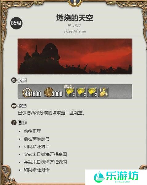 1、该副本需要玩家先完成85级的任务【燃烧的天空】才能开启;