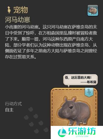 最终幻想14水晶世界河马幼崽怎么获取 河马幼崽获取方法