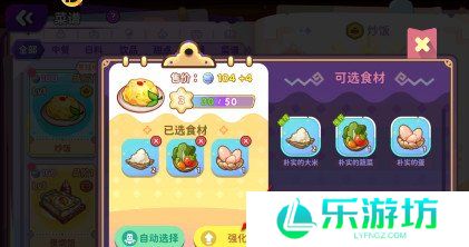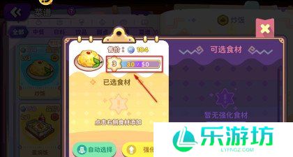 2、在强化界面中,选取用于强化的食材并点击确认。