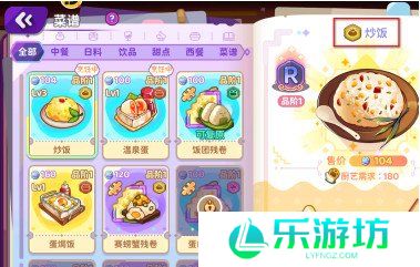 1、进入菜谱页面,点击您所需的炒饭菜谱进行强化。