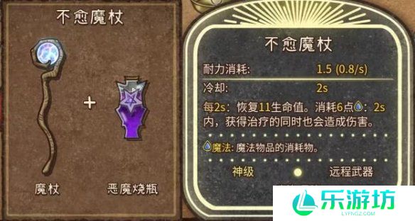3、永愈不行魔杖(神级,远距魔法黑暗武器):魔杖与恶魔烧瓶的融合之作