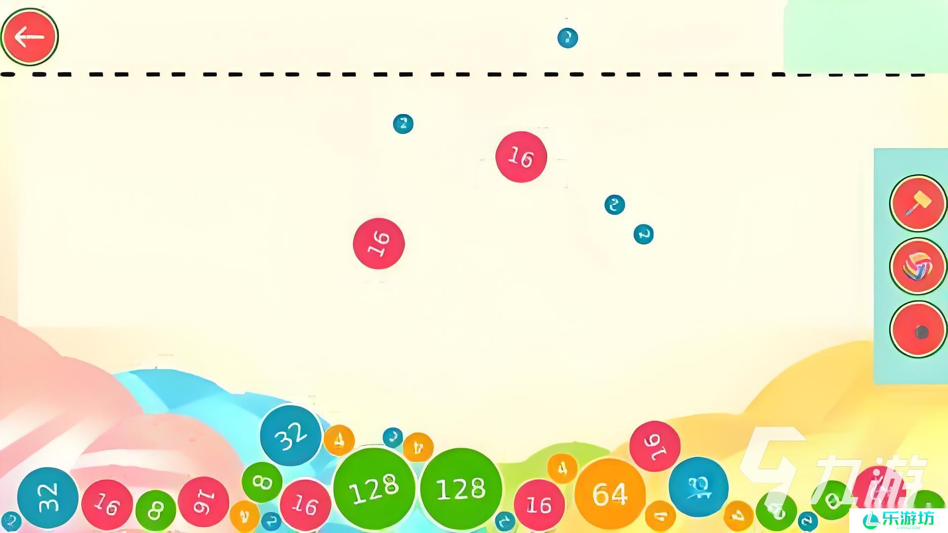 2048大合成中的所有数字全都以球状的形状出现,这些球状的数字会从空中掉落的地面上。当数字掉落到地面上以后,数字都会出现滚动的动态效果。所有的数字球都采用了不同的颜色进行搭配,让玩家们能更清楚的把边界给划分出来。玩家在合成数字的时候不能无脑的进行操作,而是需要将数字球的落点位置给判断出来才行。这样更方便大家用相同的数字球来融合。