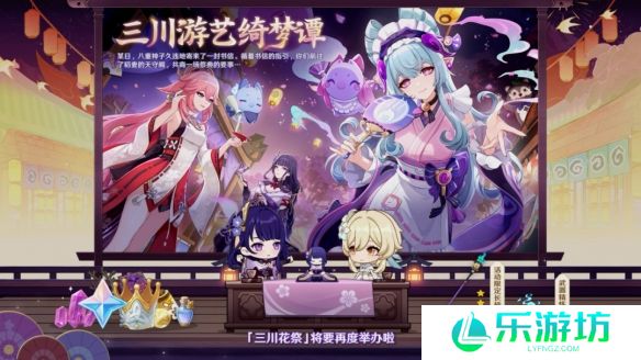 本次的版本大活动舞台是在稻妻,参与活动可获得一把4星长柄武器。我们将会迎来新的三川花祭,三个参展队伍带来了3个活动玩法。