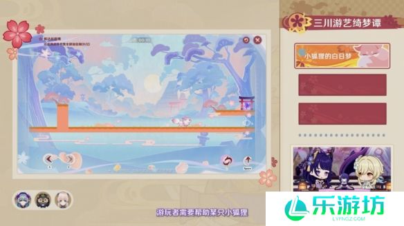 第一个玩法是操作小狐狸在两个世界中切换,吃到油豆腐并到达终点。