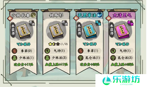 3、前10关可学习少林长拳,铁布衫,太清掌法太清罡气。