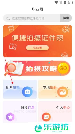 1、打开火山证件照app,选择【照片拍摄】。