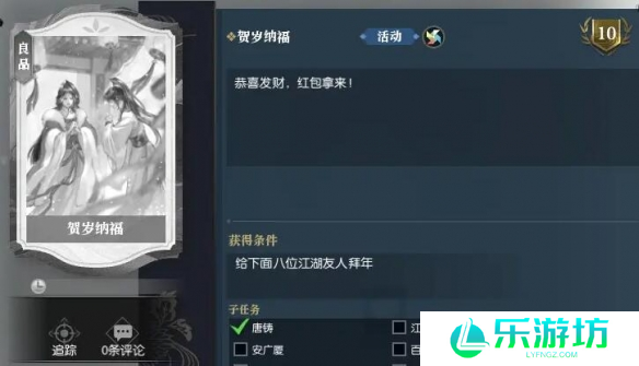 1、请在2月12日前,访问江湖中的各位好友NPC进行新春拜访问候。