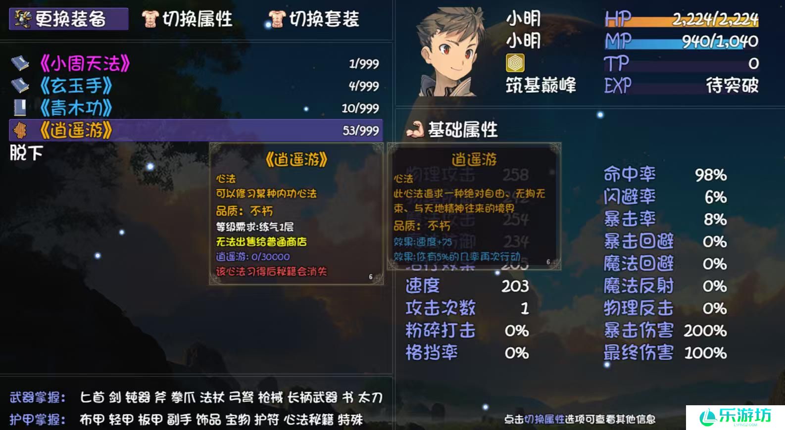 刷够六个筑基丹材料,两个给队友筑基,四个给珍馐任务用,直接逍遥游走起(如果你想换巴掌也行,确实很强,但我是再也不想再练一遍nt巴掌了)