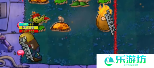 3、接着在最下方位置同时放两个扶梯僵尸,就能降低另一个僵尸受到的伤害。