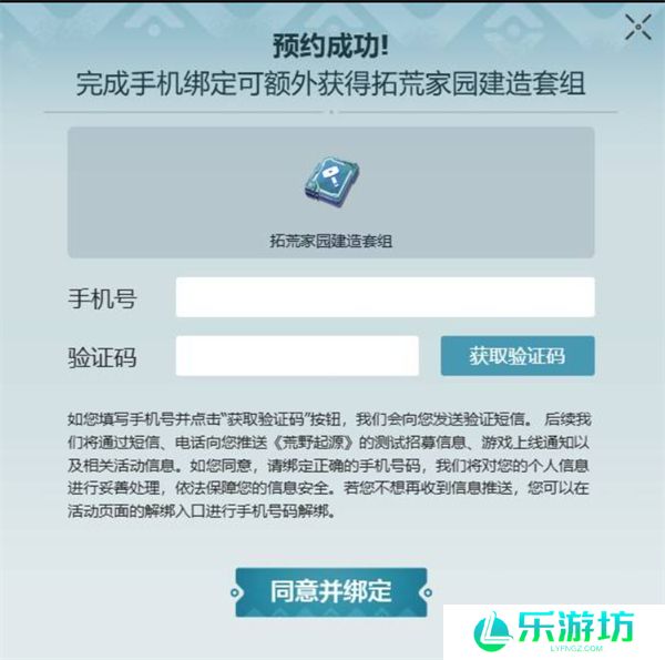 4、之后可以通过绑定手机号额外获得拓荒家园套组。