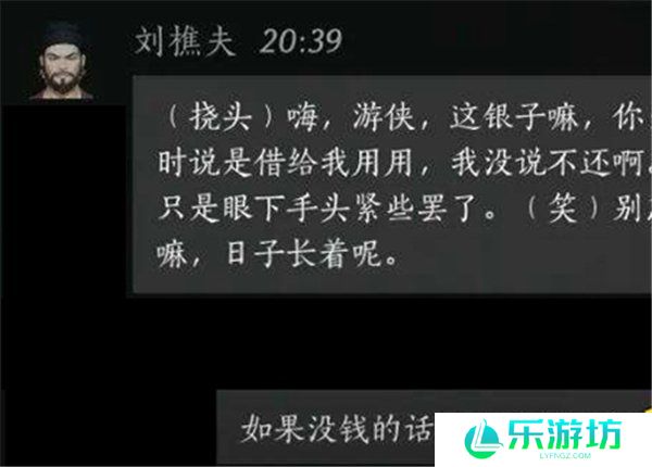 选择这个选项时,可以让刘樵夫感受到你对他的关注,也提醒他还钱,但保持了一定的礼貌,适合刚开始接触时。