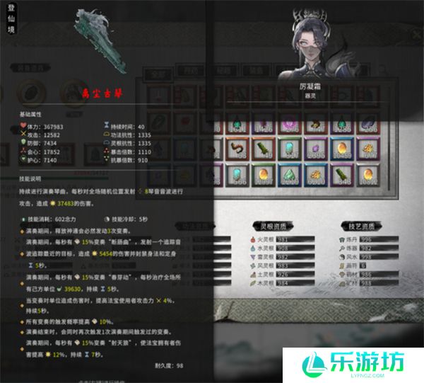 离尘古琴不仅外观古朴典雅,而且其在战斗中的辅助效果非常强大。