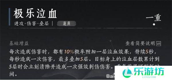 极乐泣血:这是一种超高频攻击的搭配心法,能够配合高频攻击造成大量刺伤,尤其在短时间内能叠加极高的伤害。