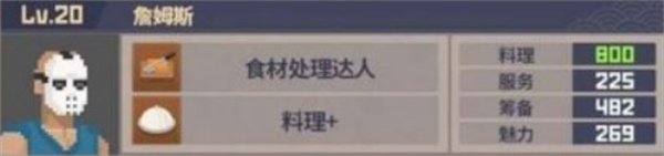詹姆斯具有较高的料理属性和食材处理达人技能,适合在厨房内高效地进行烹饪和食材准备。詹姆斯能够提高餐品的制作效率,并减少因食材准备不充分而浪费的时间,确保食物能及时送到顾客手中。
