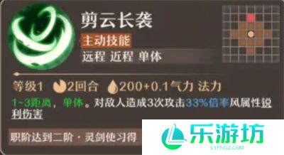 2、剪云长袭(主动技能)