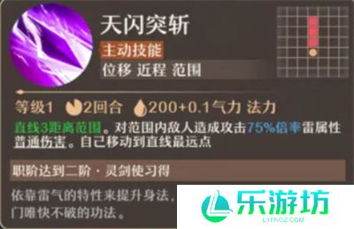 天闪突斩:直线攻击技能,能够迅速移动到敌人最远处并造成雷属性伤害,适合打乱敌方阵形并先手输出。