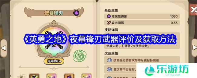 英勇之地夜幕锋刃武器强度介绍 夜幕锋刃武器怎么样