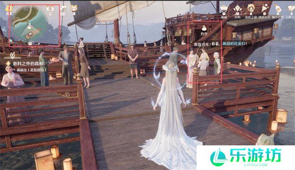 3、然后上船,到楼梯口,找这个NPC购买花笼灯,找不大看下图小地图