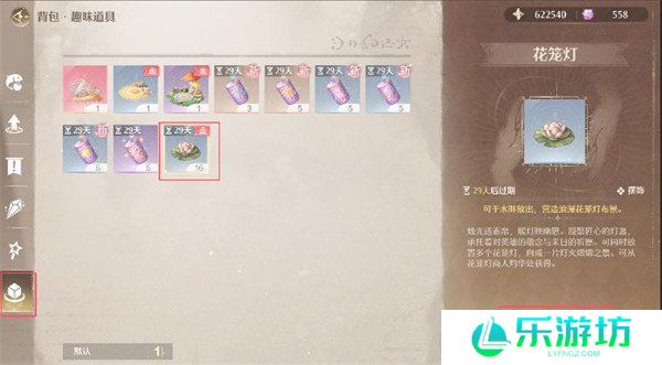4、然后点击背包,最下面一个,点击花笼灯,装备